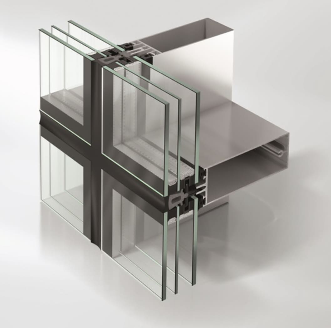 The Schuco FWS 50+ SG is a facade system with almost invisible profiles and slender joints to ensure a stunning all-glass external look. It uses pre-fillers and triple insulating glass for the lowest Ucw values which meet all standards for passive houses. The semi-structural glazing design is also available within this system.